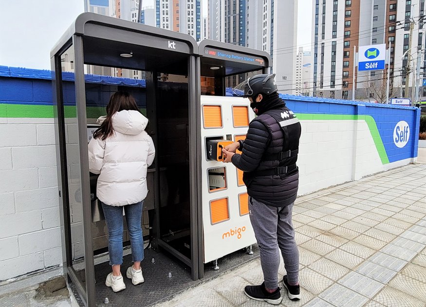 엠비아이와 KT링커스가 세계 최초로 공중전화부스를 활용한 고성능 전기이륜차 충전 배터리 교환부스(교환 스테이션) 1호를 지난 7일 부산 남구 대연동에 설치했다고 11일 밝혔다.
