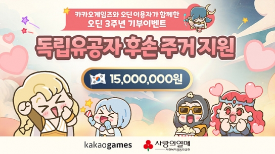 카카오게임즈가 독립유공자 후손들의 안정적인 생활환경 조성에 힘을 보태고 있다. 지난 2022년과 2023년 광복절에 개최된 ‘815런’에 후원사로 동참해 독립유공자 후손의 보금자리 사업을 지원한데 이어 이번에는 자사의 ‘오딘: 발할라 라이징’(이하 ‘오딘’) 이용자들과 손잡고 1500만 원을 모았다. 카카오게임즈는 앞서 올해 6월 26일부터 한 달 동안 일명 ‘오딘 3주...- 전체